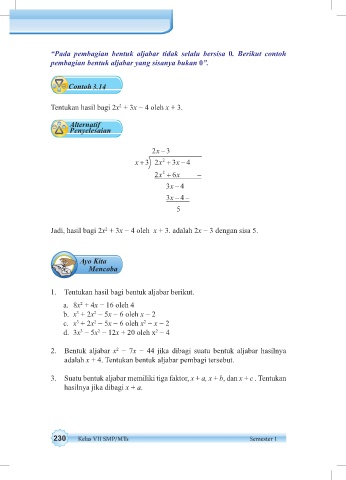 “Pada pembagian bentuk aljabar tidak selalu bersisa 0. Berikut contoh