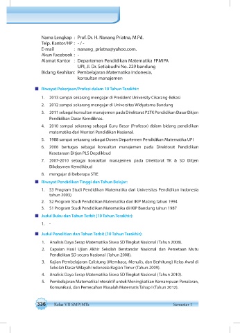 5. 1988 sampai sekarang sebagai Dosen Departemen Pendidikan Matematika UPI