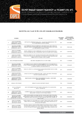 EK-PET İNŞ. SAN. TAAH. VE TİC. LTD. ŞTİ. TAMAMLANAN PROJELER