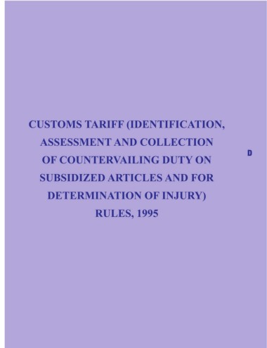 Anti Dumping Rules, 1995 CUSTOMS TARIFF (IDENTIFICATION, ASSESSMENT AND COLLECTION D OF COUNTERVAILING DUTY ON SUBSIDIZED ARTICLES AND FOR DETERMINATION OF INJURY) RULES, 1995 63