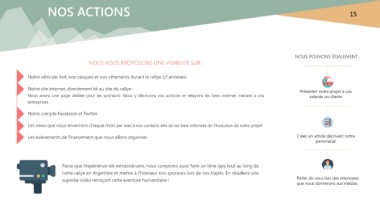 notre rallye en Argentine et mettre à l’honneur nos sponsors lors de nos trajets. En résultera une