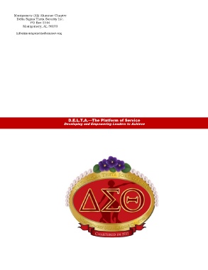 Montgomery (AL) Alumnae Chapter Delta Sigma Theta Sorority Inc. PO Box 5144 Montgomery, AL 36103 info@montgomeryalumnae.org D.E.L.T.A.—The Platform of Service Developing and Empowering Leaders to Achieve 16