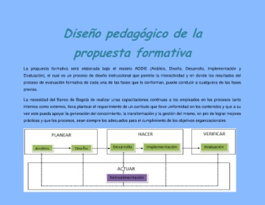 La propuesta formativa será elaborada bajo el modelo ADDIE (Análisis, Diseño, Desarrollo, Implementación y