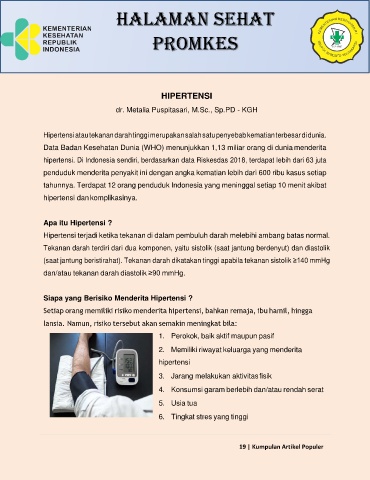 hipertensi. Di Indonesia sendiri, berdasarkan data Riskesdas 2018, terdapat lebih dari 63 juta