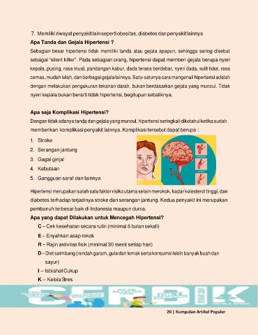 sebagai “silent killer”. Pada sebagian orang, hipertensi dapat memberi gejala berupa nyeri