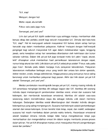 sekedar rutinitas. Dalam lirik yel-yel ILK juga terdapat motto ILK yakni “cepat, akurat,