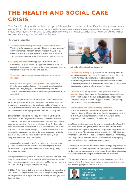 Social Care. ‘Our NHS, our ‘national religion’, is in crisis and the adult