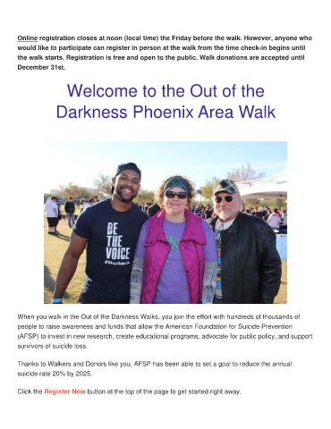 the walk starts. Registration is free and open to the public. Walk donations are accepted until