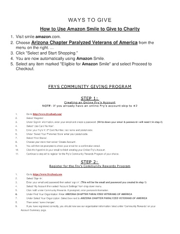 6. Under Find Your Organization: Enter ARIZONA CHAPTER PARALYZED VETERANS OF AMERICA