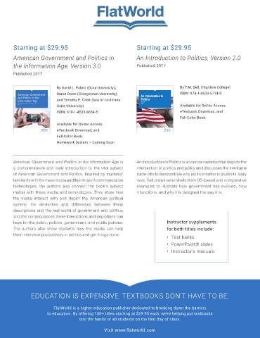 American Government and Politics in the Information Age is An Introduction to Politics is a concise narrative that depicts the
