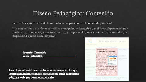 Ejemplo: Contenido WEB (Educativa) Los elementos del contenido, son las zonas en las que se muestra la información relevante de cada una de las páginas web que componen el sitio .
