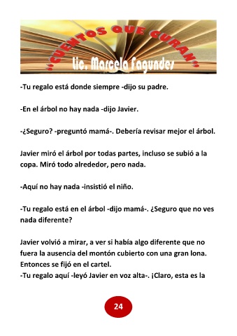 -Tu regalo aquí -leyó Javier en voz alta-. ¡Claro, esta es la