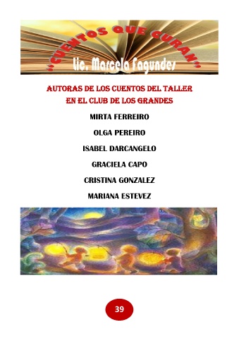 AUTORAS DE LOS CUENTOS DEL TALLER EN EL CLUB DE LOS GRANDES MIRTA FERREIRO OLGA PEREIRO ISABEL DARCANGELO GRACIELA CAPO CRISTINA GONZALEZ MARIANA ESTEVEZ 39