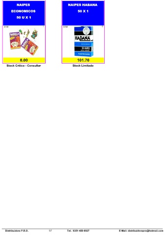 NAIPES NAIPES HABANA ECONOMICOS 50 X 1 50 U X 1 3768 / 3769 0 0 1 0.00 101.70 Stock Crítico - Consultar Stock Limitado Distribuidora P.R.O. 57 Tel.: 0351-458-8927 E-Mail: distribuidorapro@hotmail.com