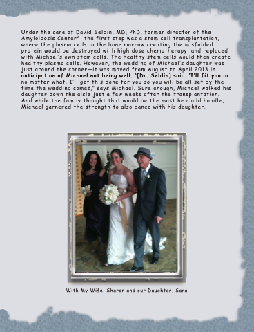 p r o t e in w o u ld b e d e s t r o y e d w it h h ig h d o s e c h e m o t h e r a p y , a n d r e p la c e d withMichael‛sownstem cels.Thehealthystem celswouldthencreate healthyplasmacels.However,theweddingofMichael‛sdaughterwas justaroundthecorner—itwasmovedfrom AugusttoApril2013in