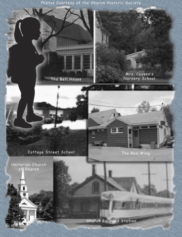 PhotosCourtesyoftheSharonHistoricSociety CottageStreetSchool UnitarianChurch ofSharon The Red W ing TheBelHouse Mrs.Cousen‛s NurserySchool Sharon Railroad Station