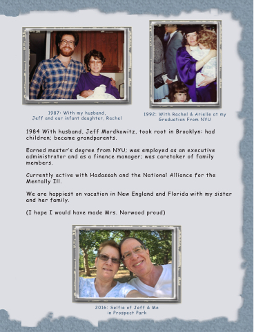 1984 With husband, Jef f Mordk mitz, took root in Brooklyn: had children; became grandp arents.