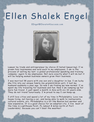 Lawyer by trade and entrepreneur by choice (I hated lawyering). I've grown four businesses and sold each to my employees. I am in the process of selling my last--a global professional speaking and training company--again to my employees. Not sure exactly what I will do but it will be helping woman business owners grow their business.