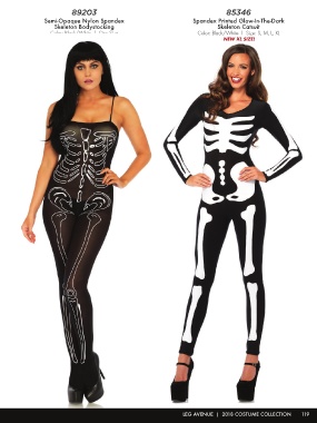 89203 85346 Semi-Opaque Nylon Spandex Spandex Printed Glow-In-The-Dark Skeleton Bodystocking Skeleton Catsuit Color: Black/White | One Size Color: Black/White | Size: S, M, L, XL NEW XL SIZE! LEG AVENUE | 2018 COSTUME COLLECTION 119