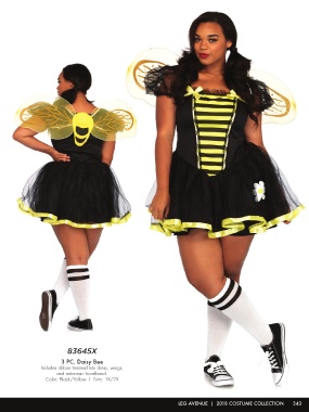 83645X 3 PC. Daisy Bee Includes ribbon trimmed tutu dress, wings, and antennae headband. Color: Black/Yellow | Size: 1X/2X LEG AVENUE | 2018 COSTUME COLLECTION 343