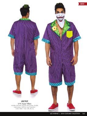 86763 2 PC Super Villain Includes character jumpsuit with pockets, double sided zipper, and face mask bandana. Color: Multi | Size: SM, ML, XL LEG AVENUE | 2018 COSTUME COLLECTION 363