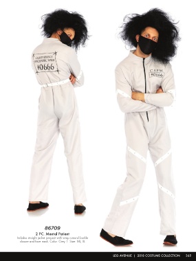 86709 2 PC. Mental Patient Includes straight jacket jumpsuit with wrap around buckle closure and face mask. Color: Grey | Size: ML, XL LEG AVENUE | 2018 COSTUME COLLECTION 365