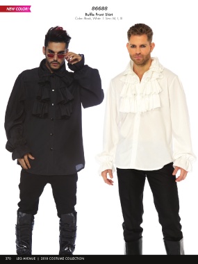 86688 Ruffle Front Shirt Color: Black, White | Size: M, L, XL 370 LEG AVENUE | 2018 COSTUME COLLECTION