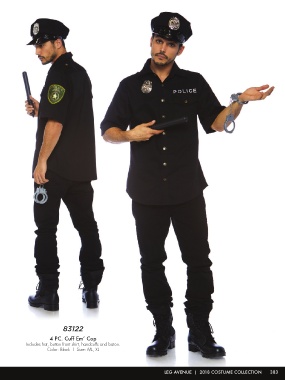 83122 4 PC. Cuff Em’ Cop Includes hat, button front shirt, handcuffs and baton. Color: Black | Size: ML, XL LEG AVENUE | 2018 COSTUME COLLECTION 383