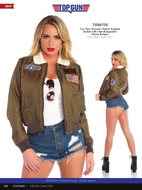 TG86735 Top Gun Women's Nylon Bomber Jacket with Interchangeable Name Badges Color: Khaki | Size: S, M, L TM & © 2018 Paramount Pictures. All rights reserved. 388 COSTUMES | LICENSED CHARACTERS