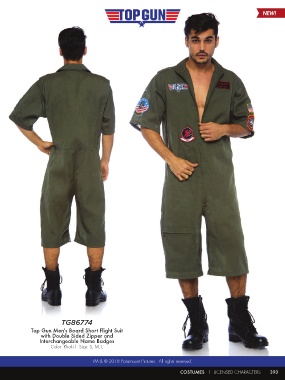 TG86774 Top Gun Men's Board Short Flight Suit with Double Sided Zipper and Interchangeable Name Badges Color: Khaki | Size: S, M, L TM & © 2018 Paramount Pictures. All rights reserved. COSTUMES | LICENSED CHARACTERS 393