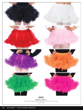 4894 Children’s petticoat. Color: Black, White, Light Pink, Red, Purple, Green, Hot Pink, Orange Size: SM, ML 426 LEG AVENUE | 2018 COSTUME COLLECTION