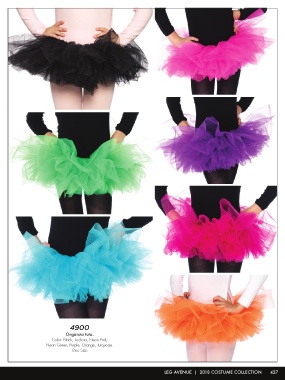 4900 Organza tutu. Color: Black, Fuchsia, Neon Pink, Neon Green, Purple, Orange, Turquoise. One Size LEG AVENUE | 2018 COSTUME COLLECTION 427