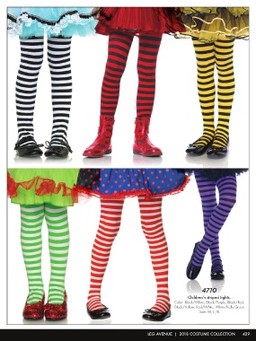 4710 Children’s striped tights. Color: Black/White, Black/Purple, Black/Red, Black/Yellow, Red/White, White/Kelly Green Size: M, L, XL LEG AVENUE | 2018 COSTUME COLLECTION 429