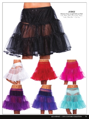 A1965 Shimmer Knee Length Petticoat Skirt Color: Black, White, Red, Fuchsia, Grape, Purple, Tiffany Blue | One Size LEG AVENUE | 2018 COSTUME COLLECTION 73 73
