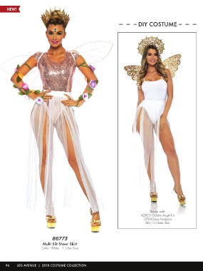 DIY COSTUME Shown with: A2823 Golden Angel Kit 3764 Basic Bodysuit 86773 Sheer Skirt 86773 Multi Slit Sheer Skirt Color: White | One Size 96 LEG AVENUE | 2018 COSTUME COLLECTION