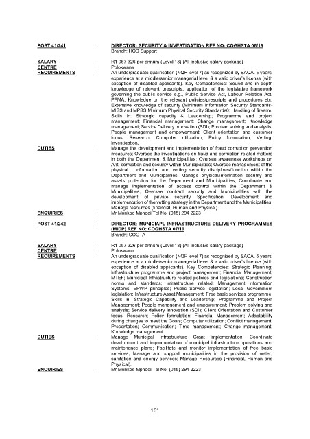 Page 161 - C:\Users\test\Desktop\JobsZA Files\Vacancies in the Public Service circular 41 2019 15 November\