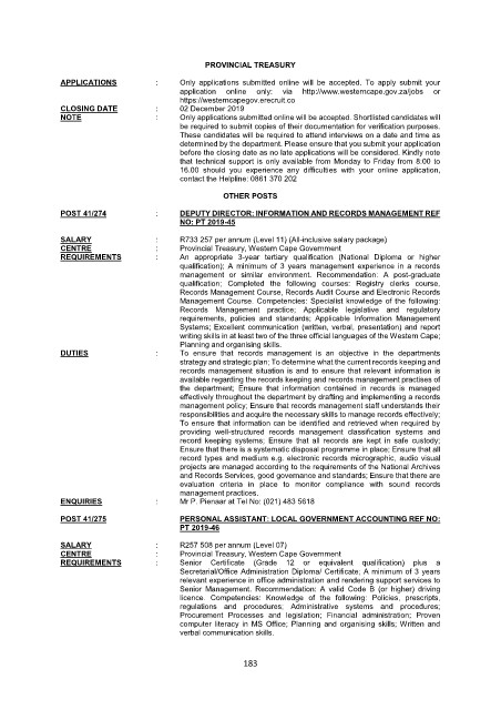 Page 183 - C:\Users\test\Desktop\JobsZA Files\Vacancies in the Public Service circular 41 2019 15 November\