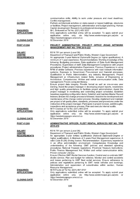 Page 189 - C:\Users\test\Desktop\JobsZA Files\Vacancies in the Public Service circular 41 2019 15 November\