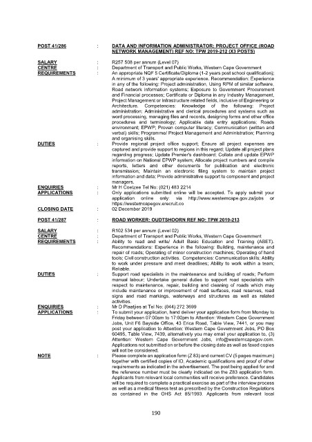 Page 190 - C:\Users\test\Desktop\JobsZA Files\Vacancies in the Public Service circular 41 2019 15 November\