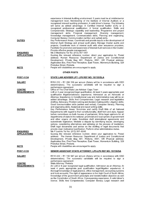 Page 31 - C:\Users\test\Desktop\JobsZA Files\Vacancies in the Public Service circular 41 2019 15 November\