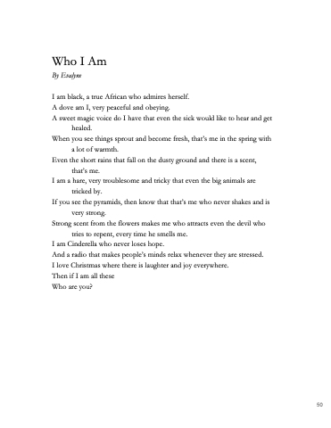I am black, a true African who admires herself.