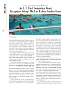 with various changes designed to alleviate student stress. The first and biggest change was the daily schedule. Pass- ing bells were eliminated, class periods were lengthened and their number per day reduced, and breaks were add- ed, including a late-start day once a week so perennially overtired students could catch up on sleep. After an initial period of confusion, a new sense of peace descended on campus, and in time, others took notice. As Mr. Schlaak notes in the Ford grant application, “The bell schedule we created is still used by Independent School Management as the gold standard for independent school schedules em- ploying sound theoretical design.”