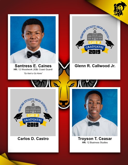 CLASS OF 2019 Santress E. Caines Glenn R. Callwood Jr. HR: 12 Woodwork | CG: Coast Guardl “Go Hard or Go Home” CLASS OF 2019 Carlos D. Castro Troyson T. Ceasar HR: 12 Business Studies
