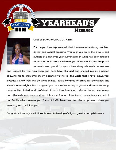 C CLASS OFLASS OF YEARHEAD'S 2019 Message 2019