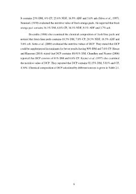 orange peel contains 16.1% DM, 6.8% CP, 14.1% NDF, 9.1% ADF and 3.7% ash.