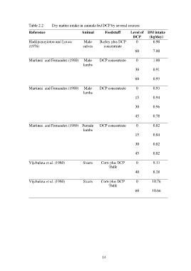 Table 2.2 Dry matter intake in animals fed DCP by several sources
