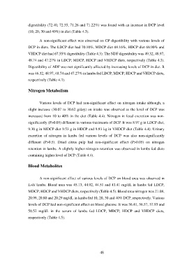 20.99, 20.80 and 20.29 mg/dL in lambs fed 10, 20, 30 and 40% DCP, respectively. Various