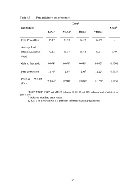 Table 4.7 Feed efficiency and economics