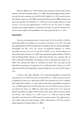 in digestibility in dairy cows, when levels of DCP were increased (9.6 to 20.7% of dietary