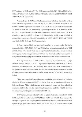 lambs. The DM digestibility of DCP (10, 20, 30, and 40%) was 69.60, 69.57, 68.18 and
